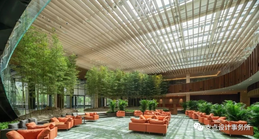 斷竹、續(xù)竹、飛土、逐宍。”壹首《彈歌》寥寥八個字,記錄的是中國人與竹子宿世的緣分。所以餐廳豈能無竹?竹林掩映下,松生青石上,大理石、花崗巖、橡木和胡桃木層層疊疊構(gòu)置的風(fēng)景,似乎太過詩意,但卻是隈研吾眼裏‘空間呈現(xiàn)’的最好方式。