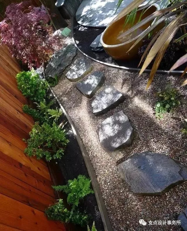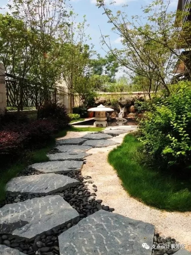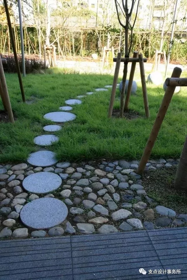 園中小徑,花園的脈絡,它串聯(lián)起園中的各色植物小品,延伸出花園的自然意境。圓形的石板,走出棋盤的人生。鵝卵石擺成美麗動人的花紋,這個需要花費很多的心思,每個鵝卵石的規(guī)格都要相似確又不同。