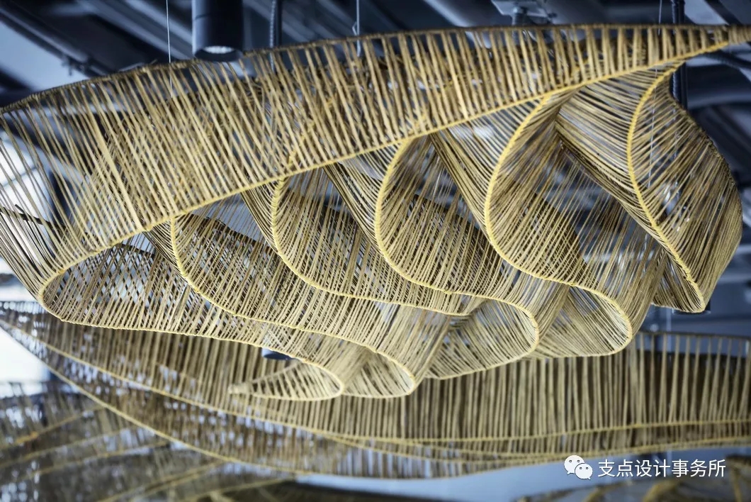 肌理豐富的竹、藤、木等自然材料交錯層疊,編織出紋理豐富的立面。文化的碰撞、知識的交匯、一切的碰撞在這些立面之后鋪陳展開。