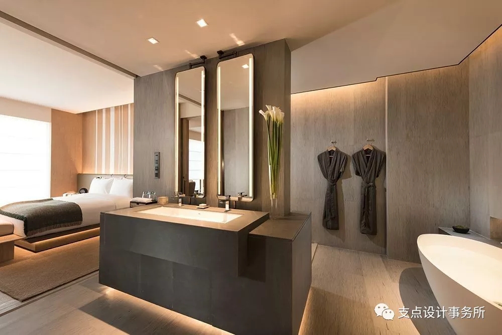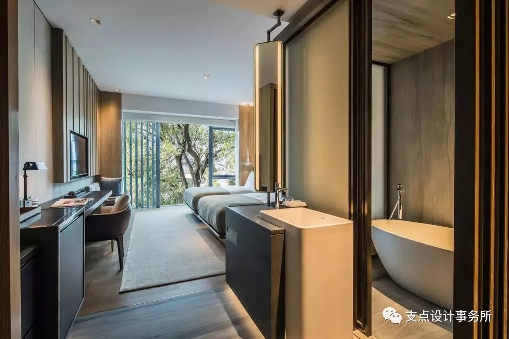 客房的設計自然、溫馨、舒適,營造出家的感覺,同時在平面布置上盡可能把空間打開,形成通透的視覺感受。擺脫傳統(tǒng)框架,通過巧妙的誰來強化空間功能互作延伸,使每個區(qū)域皆能單獨使用,又可連通。
