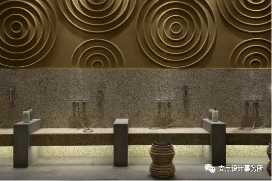 淋浴區(qū)通過極其簡約的現(xiàn)代設(shè)計和構(gòu)成手法創(chuàng)造出即自然,米色石材造型隔斷規(guī)整有序,鋼筋網(wǎng)束縛的卵石造型將自然的原始韻味表現(xiàn)的*。室內(nèi)水景景觀小品安于一隅,創(chuàng)造一個與自然環(huán)境和諧共生的一方空間。