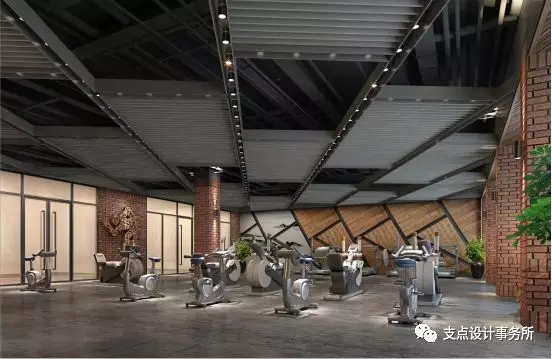 健身房設(shè)計沒有過度矯飾,而近似“復歸于樸”。水泥地面、條磚、夯土墻泥,透空的格柵吊頂,以物質(zhì)的“簡”去留白精神的“盈”,營造出“無”意藴之境。